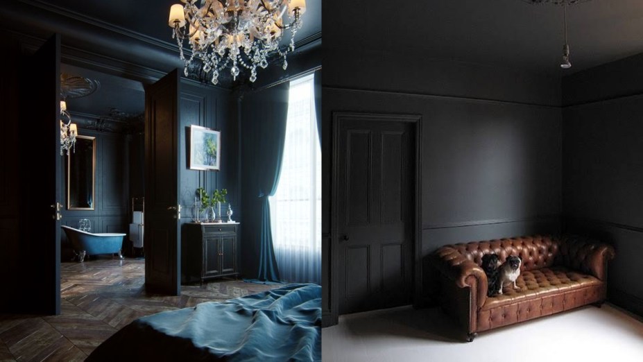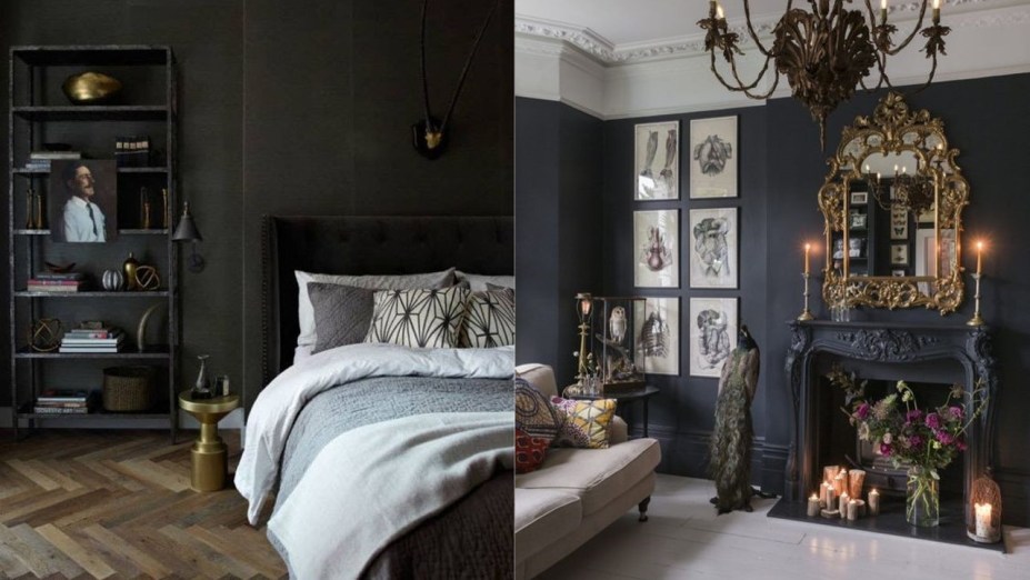 Para entrar na temática assustadora, os ambientes pedem cores escuras, especialmente as paredes. Como você deve se sentir bem e confortável no espaço, opte por um esquema mais forte, mas com tonalidades de suas preferências.