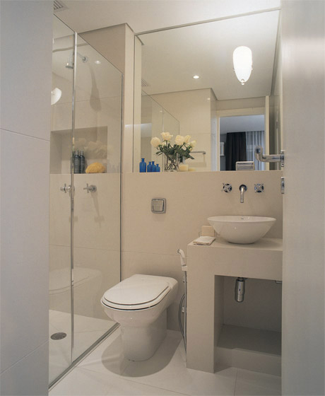 Superfícies espelhadas e transparentes valorizam o banheiro com a impressão de amplitude e leveza. Abusar da luz natural também é uma medida válida. Espelhos grandes ajudam na sensação de espaço, pois duplicam visualmente o ambiente.