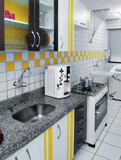 Cozinha amarela decorada com adesivo vinílico