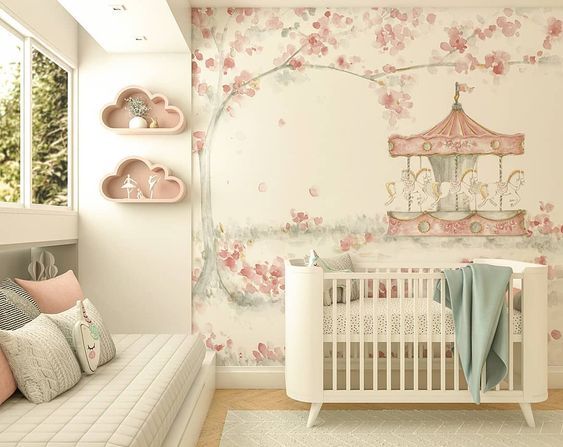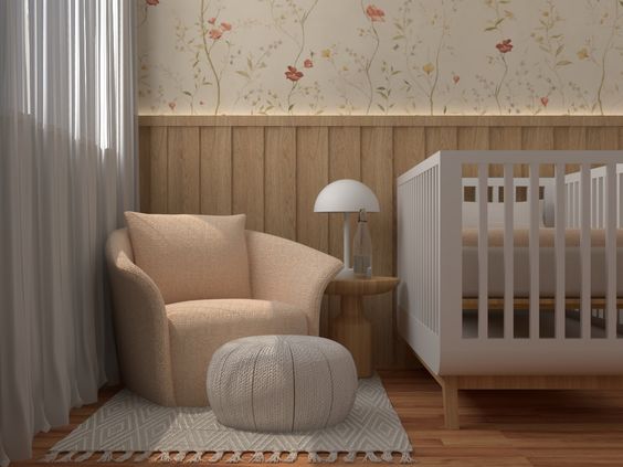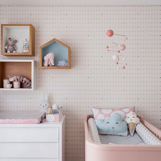 Se você é do time dos que amam papel de parede, siga o mesmo pensamento: no quarto de criança, menos pode ser mais. Estampas mais suaves e com menos elementos podem deixar o espaço mais equilibrado e acolhedor.
