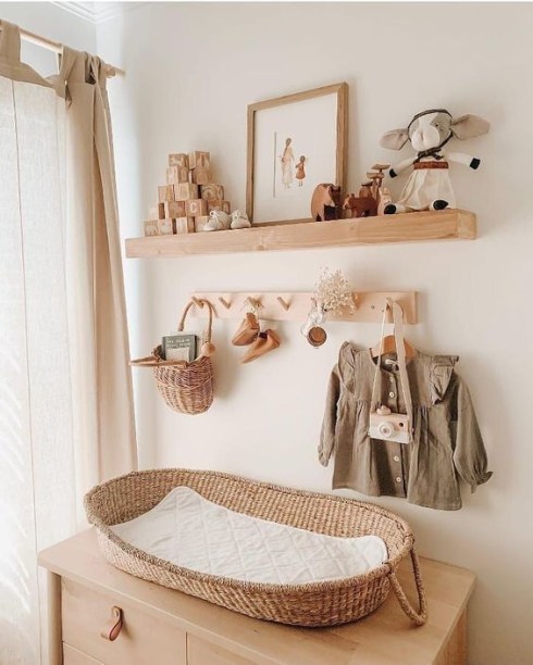 Outro móvel que vai te ajudar no dia a dia da maternidade é um bom e grande armário para guardar o enxoval da criança, junto às toalhas, cobertores e mantas.