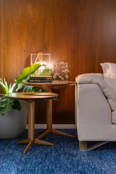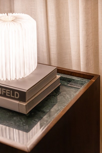 A arquiteta escolheu peças de grandes nomes do design e da arte brasileiros para decorar o espaço, dividido em área de estar e jantar. Nas paredes, os visitantes podem apreciar obras de artistas emblemáticos como Sônia Menna Barreto, Volpi, Sando Goes, Moacyr Travaglia, Marcos Garrot e Diogo Miranda.