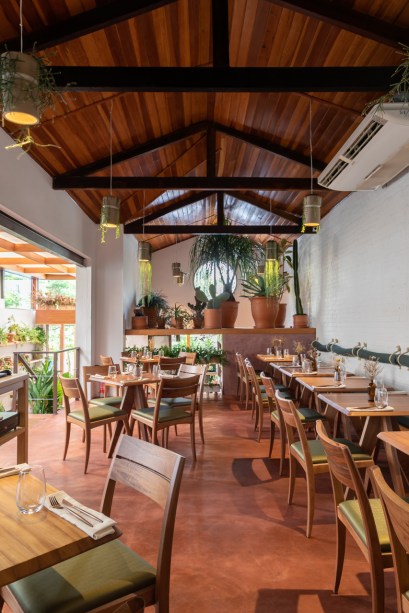 Restaurante Cajuí, assinado pelo escritório VAGA Arquitetura, também possui canteiros com ingredientes usados nos pratos do estabelecimento