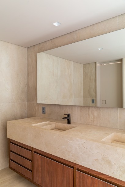 O projeto de 433 m², com assinatura da Cité Arquitetura, une paredes portantes de pedra-de-mão, muxarabi e piso de tábua-corrida