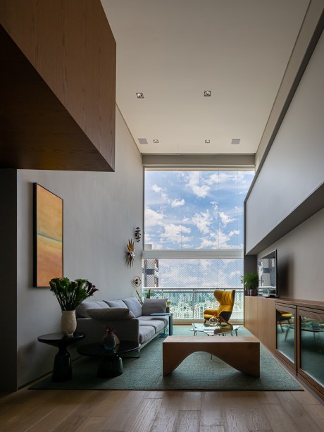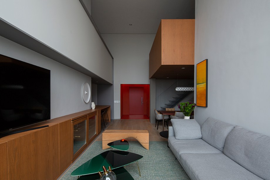 4 caixas cromáticas criam funções em apê com pé-direito duplo