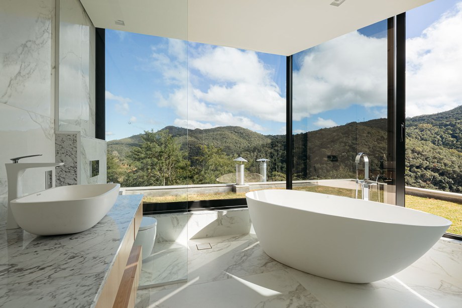 Capitaneado pelo escritório 24 7 Arquitetura, o projeto teve como ponto de partida a vista privilegiada da natureza e o desnível do terreno. Os moradores são um casal aventureiro sem filhos, que gostaria de ter esse contato mais próximo ao verde.
