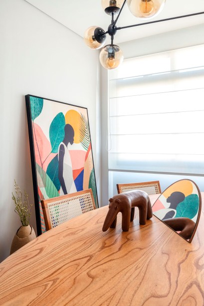 “Quando nos deparamos com apartamentos antigos, sempre avaliamos a possibilidade de aproveitar as características marcantes do imóvel”, conta Gabriela Ferraz. O ponto alto do projeto é a viga e o pilar aparente em sua forma natural. Eles receberam apenas um tratamento superficial, feito para regularizar sua cor, mas ainda assim, mantendo suas características naturais.