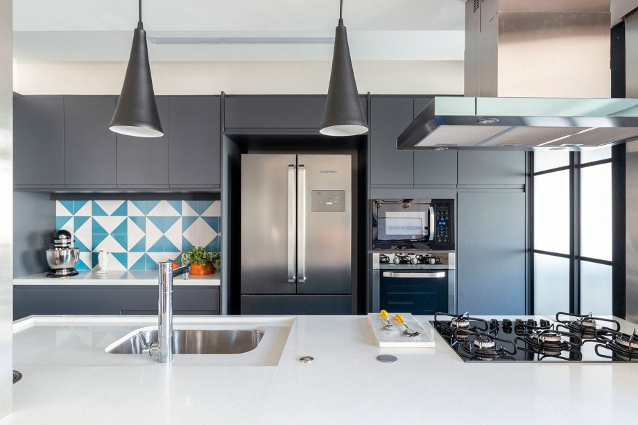O que os moradores desejavam, por outro lado, é que a morada fosse funcional e totalmente integrada, e parecesse esses projetos de “capa de revista“. A partir deste briefing, as profissionais tiveram que driblar alguns imprevistos durante a obra, principalmente nos locais onde as intervenções foram maiores: cozinha e sala.