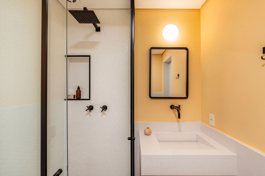 Esse foi o caso do projeto deste apartamento de 110 m², localizado no bairro do Paraíso, na capital Paulista. O jovem casal proprietário adquiriu o apê em um edifício antigo e pouco tinham informações precisas sobre a planta do imóvel. “Não sabíamos exatamente qual era a dimensão do pilar e a altura da viga, por exemplo. Somente após o início da obra que conseguimos descobrir o tamanho exato desse elementos estrutural”, relatou a arquiteta Bruna Lodetti, que ao lado de Gabriela Ferraz, comando o escritório Cota Arquitetura, responsável pelo projeto desta reforma.