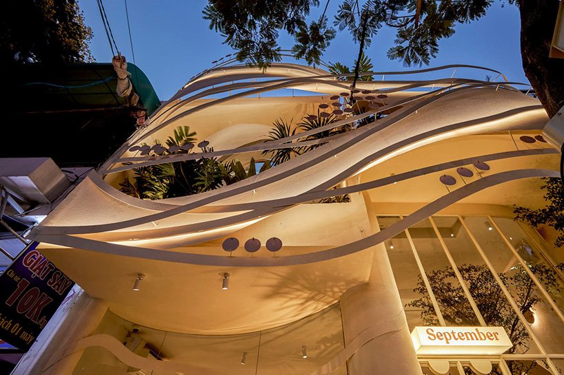 Chamado “september cafe – the wind blows” (Café de Setembro – O Vento Sopra, em tradução livre), a loja posicionada em um terreno entre duas casas na cidade de Ho Chi Minh, no Vietnã, foi projetado pelo Red5studio e Ben Decor.