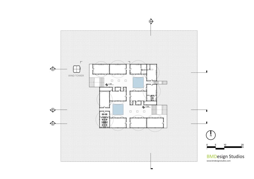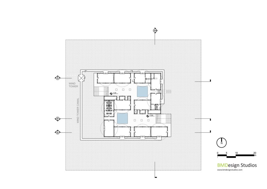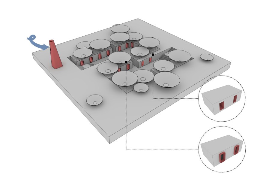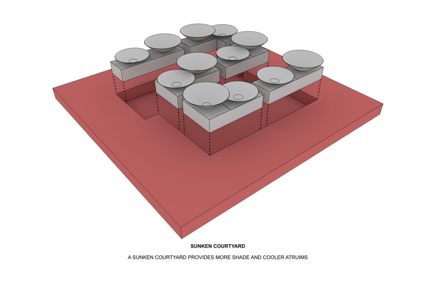 Os reservatórios que se conectam aos sistemas de coleta serão colocados entre as paredes do edifício, permitindo um maior controle da flutuação da temperatura dos espaços internos, devido à capacidade de armazenamento de calor da água. Tudo o que irá reduzir a pegada de carbono geral do tão necessário ar-condicionado neste ambiente hostil.