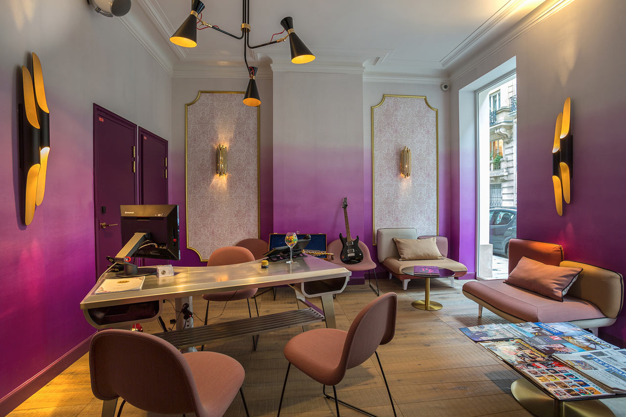 Em um bairro parisiense amante da música, o Idol Hotelis resolveu homenagear seu entorno. No hotel, foram os ritmos do funk, soul e jungle dos anos 60, 70 e 80 que serviram de inspiração para a decoração dos ambientes. As áreas comuns são marcadas por uma paleta rosada e dourada, com as paredes cobertas por um efeito degradê. O mobiliário, moderno e confortável, conversa com os papéis de parede e com detalhes como os trompetes, usados como escultura e luminária. Assinado pela designer hoteleira Julie Gauthron, cada um dos 32 quartos do hotel (cinco sendo suítes) tem cores, estilos e nomes diferentes - tudo inspirado pela música. Ali, o objetivo é fazer com os hóspedes tenham uma verdadeira experiência musical. Uma noite no Idol Hotelis custa a partir de 119 dólares. Confira mais imagens abaixo: Fonte: Design Milk Clique e conheça a loja CASA CLAUDIA!