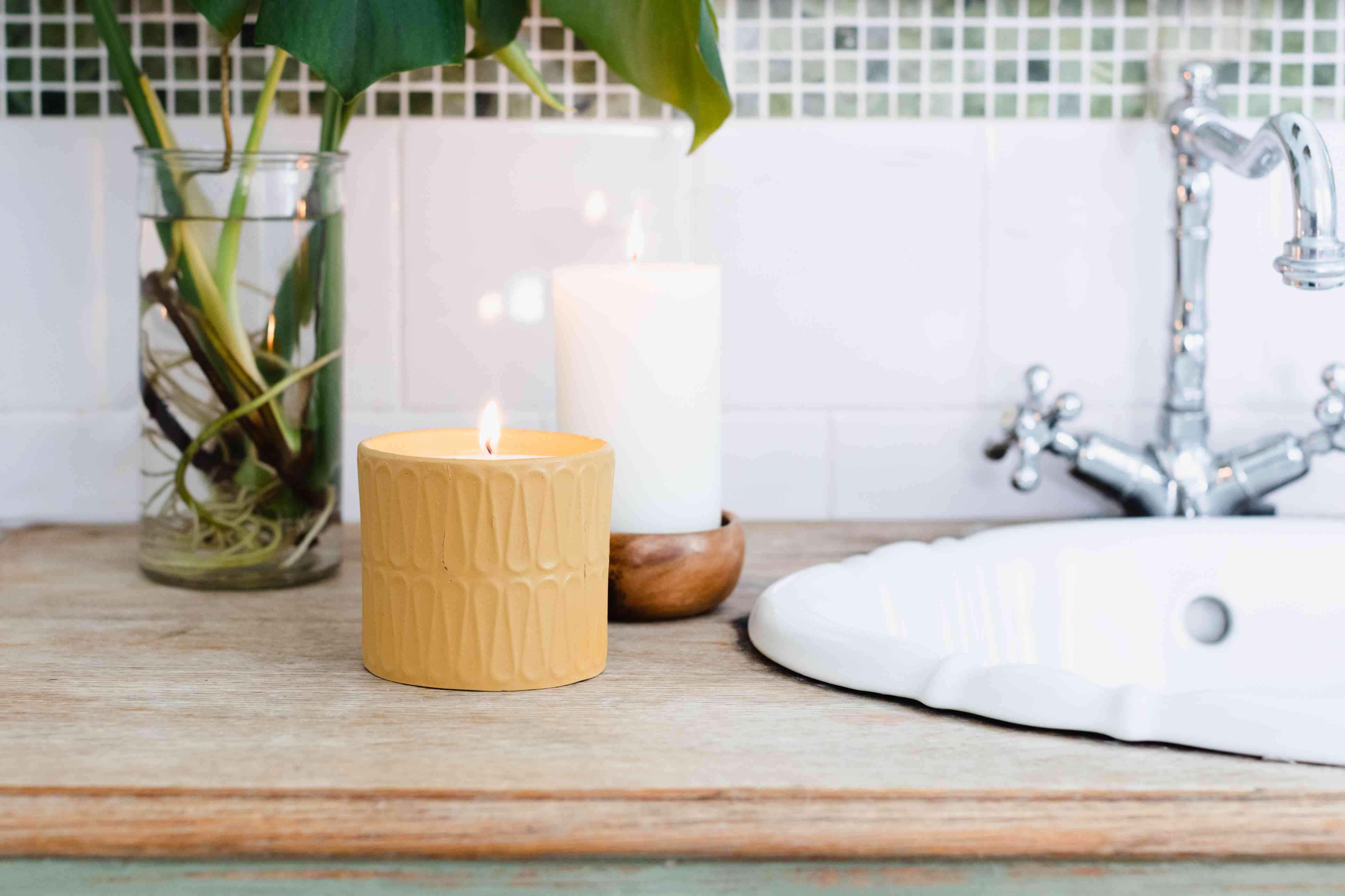 Primeiro, deixe o banheiro limpo e organizado. Acenda velas ou pelo menos diminua as luzes, coloque uma playlist bem calma e relaxante. Pegue seu robe mais aconchegante, toalhas mais macias e alguns panos. Prepare um copo de água com rodelas de limão e hortelã ou pepino para saborear.