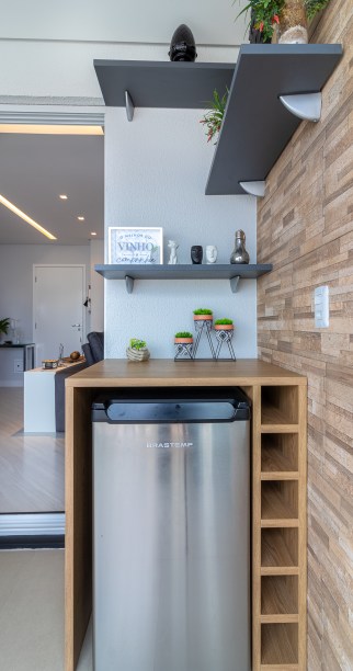 “Para criar essa sensação de continuidade, utilizei a mesma paleta de cores e inseri um balcão de refeições na junção da sala e cozinha americana, criando um elemento de transição e conexão ao mesmo tempo”, conta.