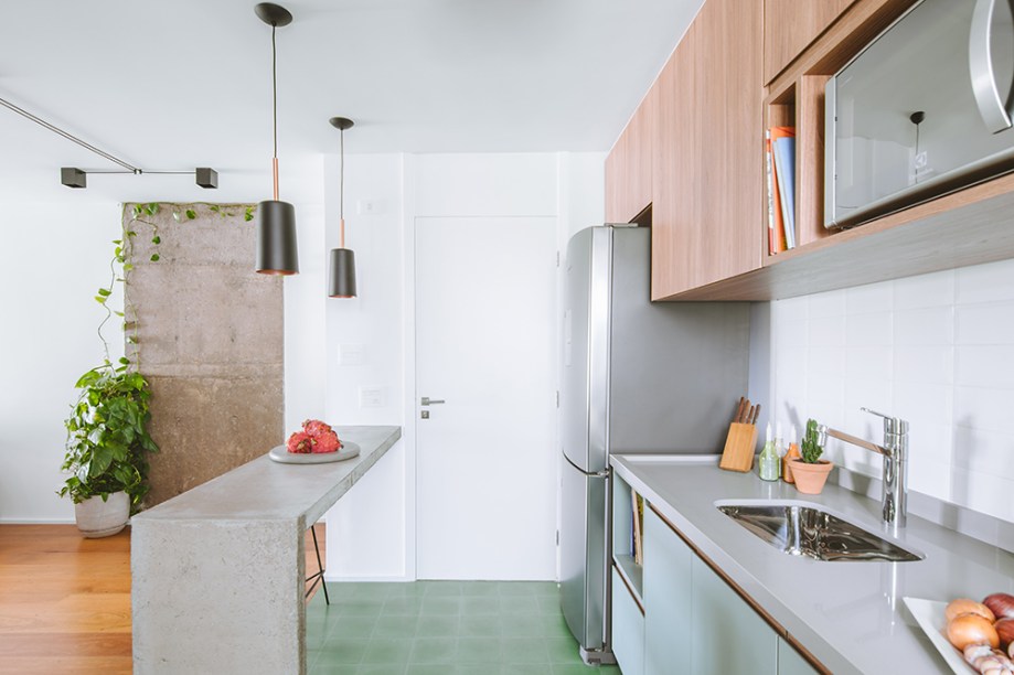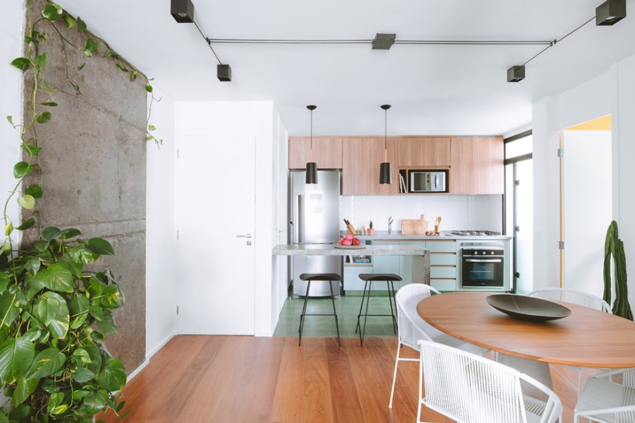 Projeto assinado pela Rawi Arquitetura investe em decoração simples e urbana nas cores verde, amarela e branca