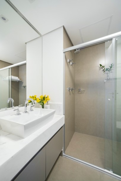Sem um cliente específico definido, os arquitetos tiveram que desenhar um projeto para receber bem diferentes moradores que estiverem passando um período em São Paulo. Isso porque o imóvel foi comprado com o propósito de ser usado para locações temporárias. Mas, em geral, a premissa foi criar um espaço onde o morador possa se sentir acolhido e que também tenha espaço para receber amigos, caso deseje. Repare que o visual clean e os ambientes sem muitas interferências ajudam nisso.