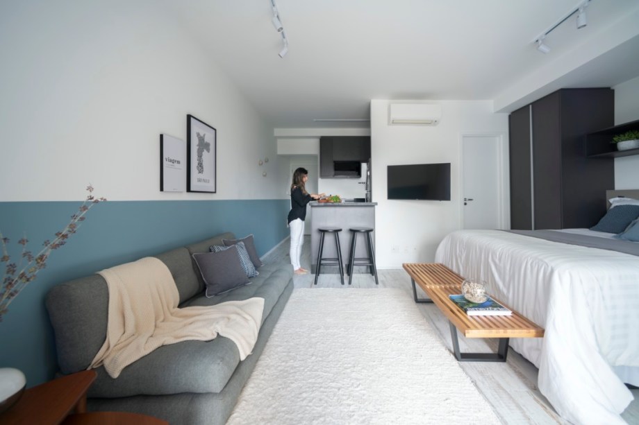 Não param de surgir empreendimentos imobiliários com microapartamentos de menos de 50 m² nas grandes cidades. E, com essa nova demanda, os arquitetos precisam colocar a criatividade à prova para fazer o espaço render na hora de elaborar o projeto. Foi isso que Amélia Ribeiro, Claudia Lopes e Tiago Oliveiro, do Studio Canto Arquitetura, tinham em mente quando planejaram a reforma deste pequeno imóvel de apenas 41 m².