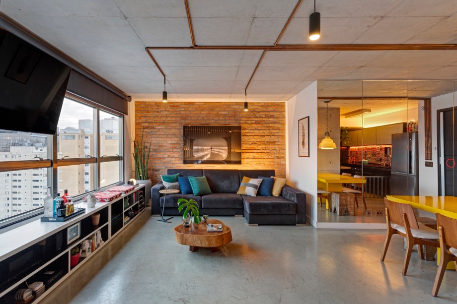 Apê de 70 m² tem estilo industrial e pode virar uma pista de dança