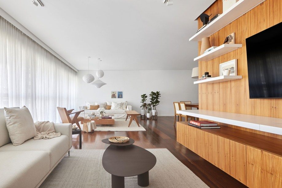 “Os clientes queriam manter o apartamento bem claro, que a decoração proporcionasse a sensação de calma, paz e aconchego e que a madeira fosse a principal protagonista do novo lar”, conta ele.