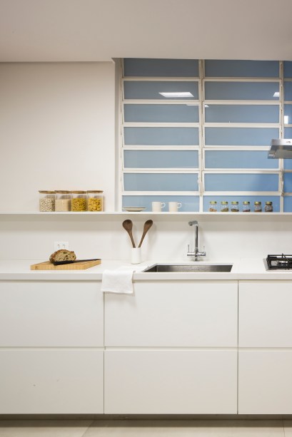 Com exceção do piso de taco de madeira e um dos dormitórios, onde a moradora inseriu seus móveis antigos, todo o restante do apartamento foi trocado.