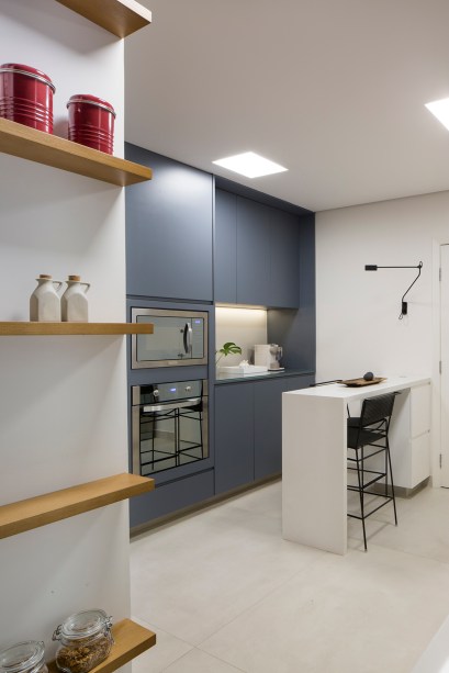“Fizemos toda uma logística junto à gerenciadora de obras para a moradora se acomodar em um dos quartos e fizemos uma pequena cozinha de apoio enquanto a obra acontecia no restante do apartamento”, explicam.