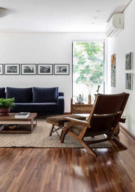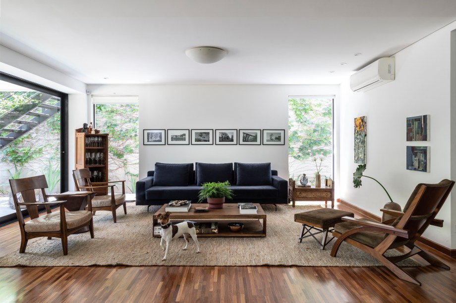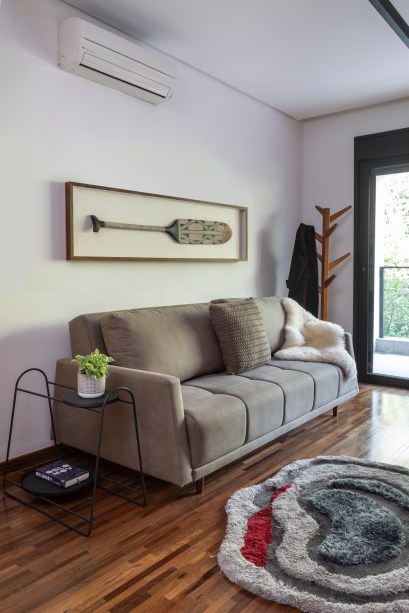 “As fotos em preto e branco emolduradas e expostas acima do sofá são da fazenda onde a cliente passou a infância e estavam sem destino na casa”, explicou Gava.