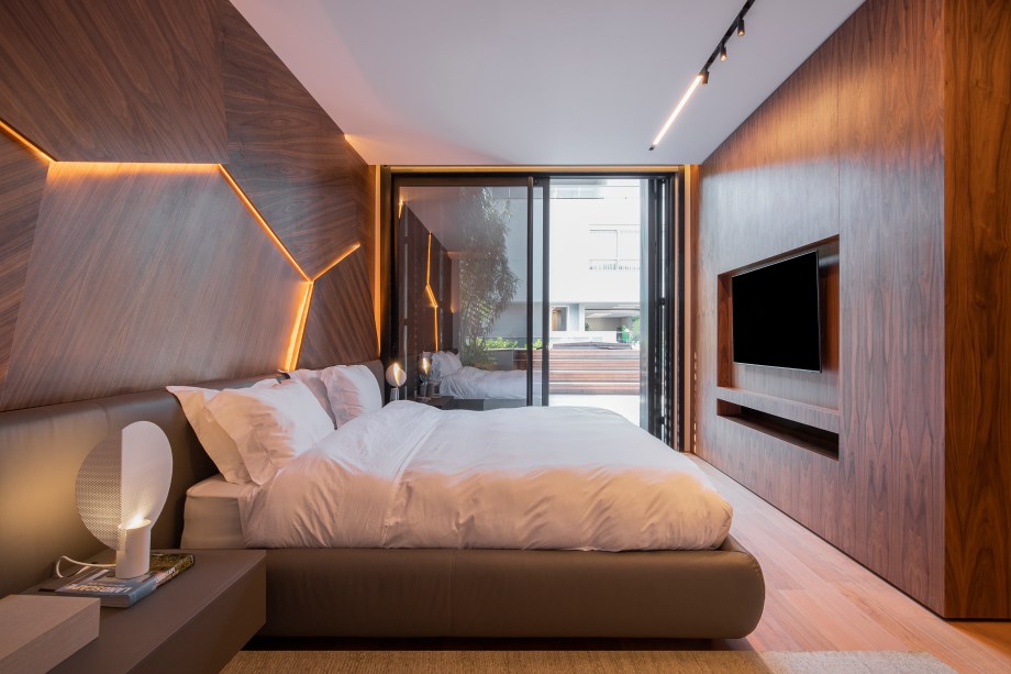 O projeto, que é assinado pelo escritório Gabriela Casagrande Arquitetura, tem uma estética sofisticada com madeira e design.
