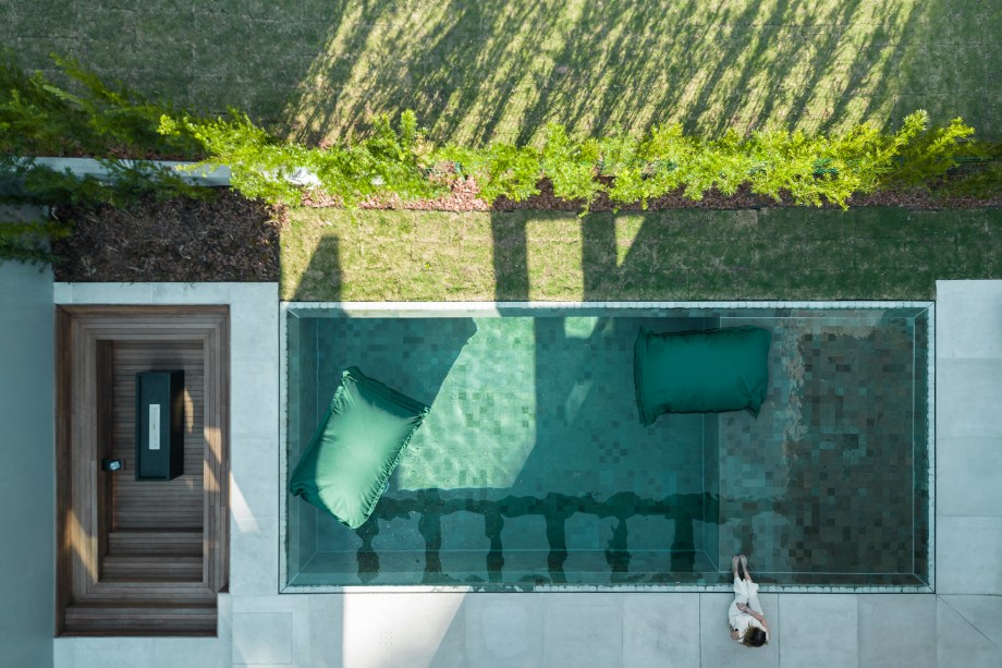 Casa de 500 m² com tons sóbrios tem cuba esculpida de mármore de 800 kg