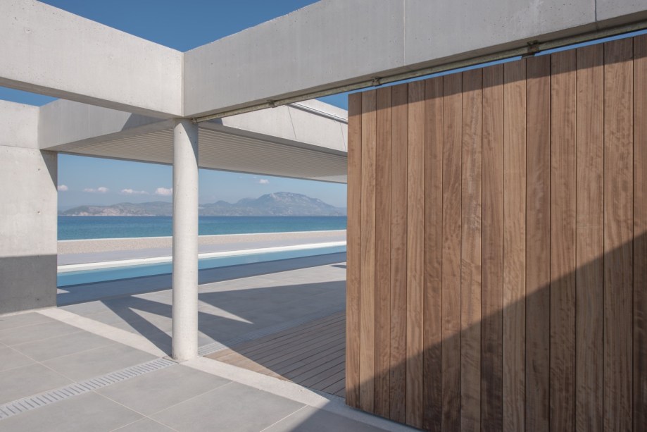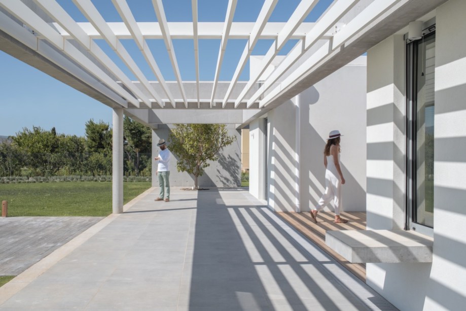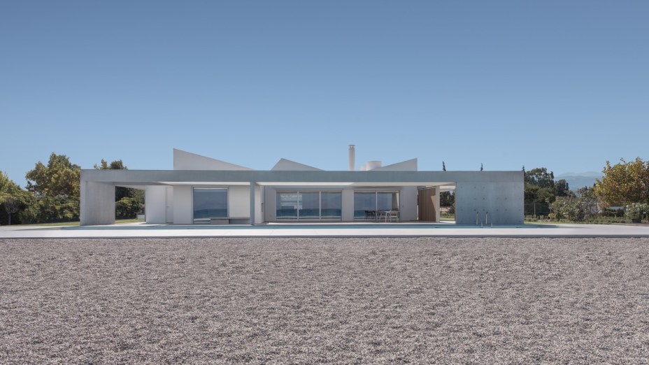 Localizada ao norte da região do Peloponeso, na Grécia, esta casa térrea foi pensada como uma tela em branco para que os moradores imprimissem ali sua história naquele lugar. Para isso, os arquitetos Giannis Douridas e Vera Kanellopoulou, do escritório RCTECH, desenharam uma arquitetura elementar, com formas geométricas simples, composta por um volume inclinado, rodeado por uma pérgula de concreto aparente e uma piscina paralela à orla da praia. Uma verdadeira ode ao modernismo.