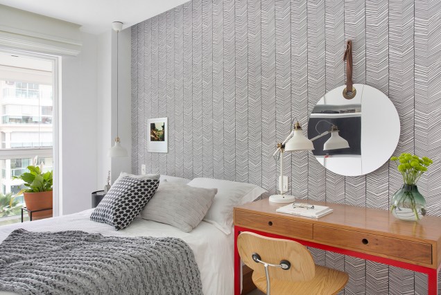 O projeto é do escritório A+G Arquitetura, que optou por uma base neutra no décor, uso de tijolinhos e uma marcenaria inteligente