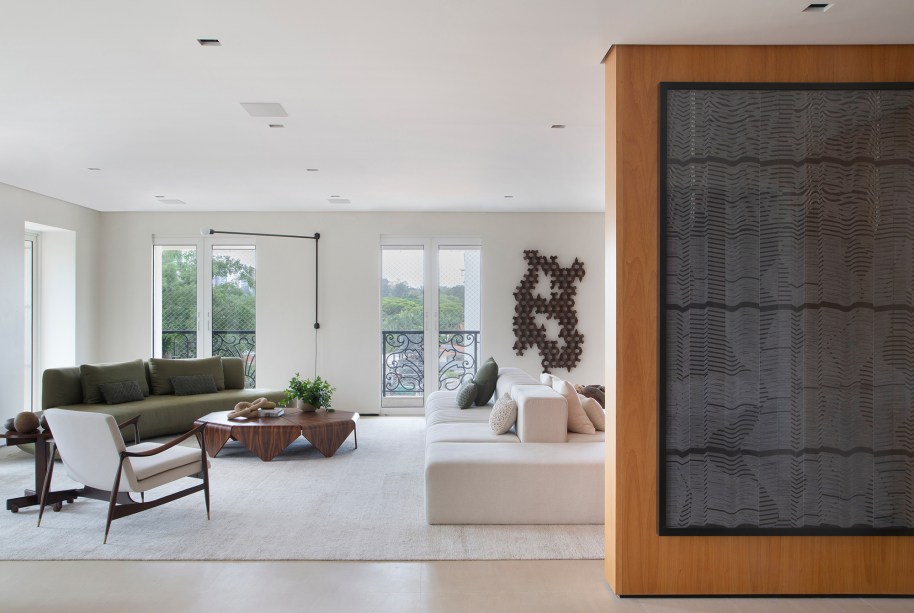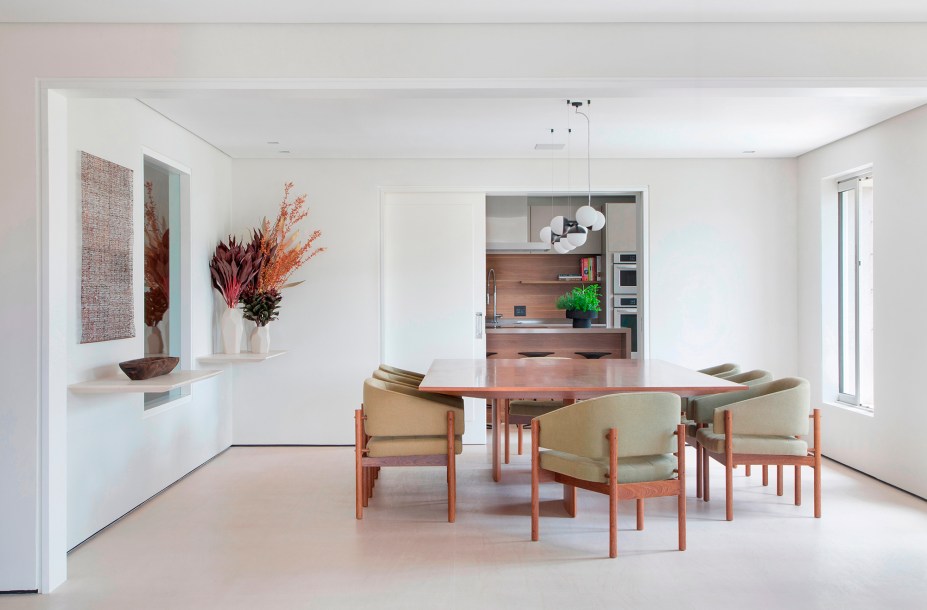 Décor minimalista, luz natural e ambientes integrados marcam apê de 350 m²
