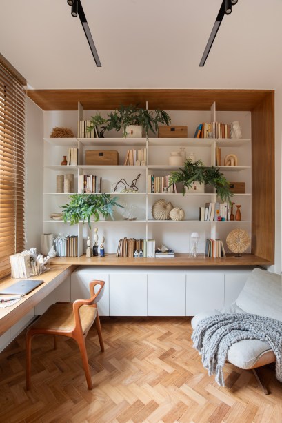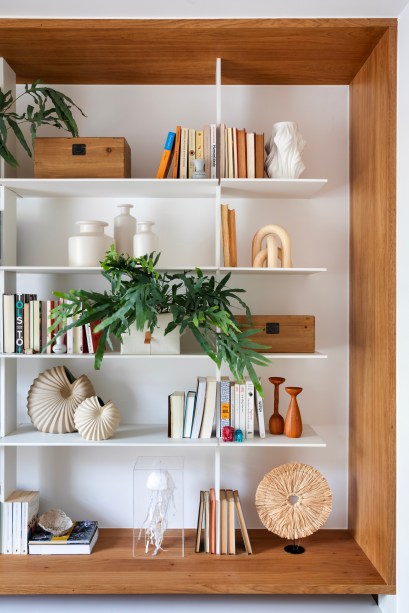 Segundo o arquiteto, no geral, a decoração segue um estilo contemporâneo urbano, de alma carioca. Como os clientes amam poltronas assinadas por Sérgio Rodrigues, na sala, decidiram expor, em local de destaque, o modelo preferido do casal: a poltrona Renata. No quesito acabamentos, Rafael priorizou materiais neutros e claros para destacar as soluções em marcenaria, desenhada sob medida pelo escritório.