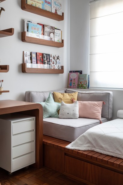 A família de moradores deste apartamento de 165 m², localizado no Itaim Bibi (São Paulo), veio de mudança do Rio de Janeiro e precisava se estabelecer logo devido ao início das aulas dos filhos pequenos.