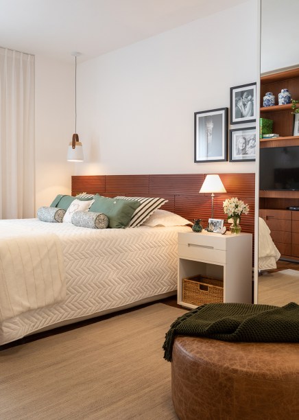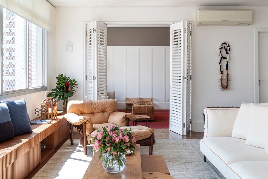 O projeto, assinado pelo Ana Veirano Studio, solucionou desafios de armazenamento e deixou os ambientes livres