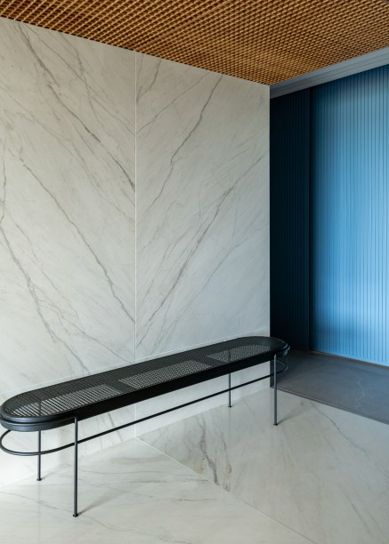 Projeto de Cristiane Furlan também utiliza azul nas paredes e no piso
