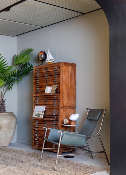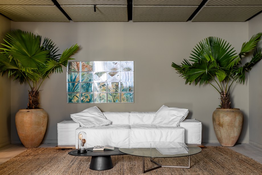 Para remeter a natureza dentro do ambiente, foram utilizados os tons de verde em texturas e formas distintas. “Os verdes predominam no espaço, utilizamos o mesmo tom da parede para criar a trama do teto, e buscamos trazer o equilíbrio e harmonia através das paisagens pintadas com o calor da praia. Junto a isso, os materiais naturais utilizados acolhem e convidam a parar, desfrutar e celebrar o agora”, finaliza Daniela Schmitt.