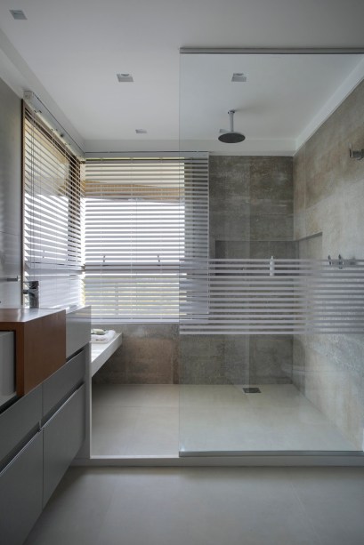 Para criar reforçar a sensação de integração, a arquiteta escolheu o mesmo piso para todos os ambientes