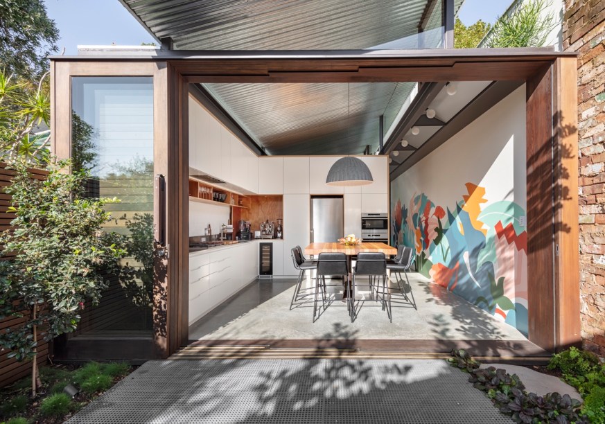 Localizada em Sydney, Austrália, esta casa antiga passou por uma reforma e ganhou uma extensão para ampliar os espaços e garantir bons momentos em família. Assinado pelo escritório Cplus, o projeto manteve a fachada, que é um patrimônio histórico, e aumentou a parte posterior para criar um pátio interno. Assim, a casa ficou dividida em três blocos.