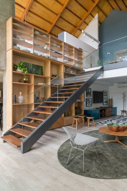 A construção era bastante escura e a divisão dos ambientes, bem diferente do que os novos moradores desejavam. Apesar de demandar uma reforma e tanto, os arquitetos indicaram essa casa antiga por causa de uma característica específica: o declive da rua oferecia uma vista maravilhosa nos fundos do terreno. “A ideia era trabalhar a arquitetura de uma forma que pudéssemos aproveitar esse cenário e aquele espaço aéreo da melhor forma possível”, explica Chantal.