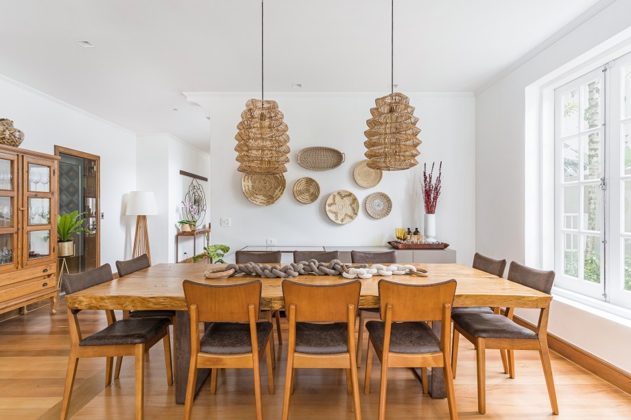 No mobiliário, a arquiteta reutilizou muito dos móveis que tinham uma pegada mais rústica e que traziam memórias afetivas, em uma nova linguagem junto às peças contemporâneas adquiridas após a reforma.