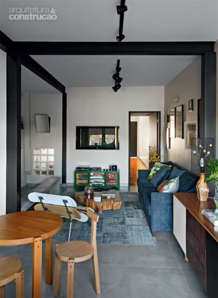 – Mais sustentação: para compensar a retirada de paredes e o aumento dos vãos de portas e janelas, vigas e pilares metálicos (JMK Serralheria) reforçam a estrutura.