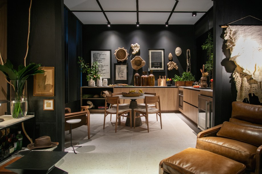 A arte permeia a cabana, que transcende na tela da artista visual Paula Klien, em um resgate de técnicas orientais milenares, presente também nos artísticos bordados feitos à mão por Marcelo Tambasco. Assinado pela arquiteta e designer Roberta Banqueri, destaque para o lançamento do receptivo e versátil Sofá Boto, que pode ser usado como cama, com formas arredondadas e uma estrutura corpórea robusta, em referência à natureza dócil do mamífero.