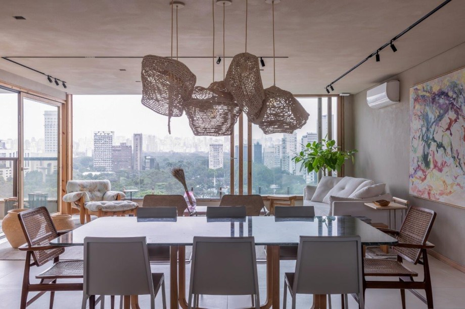 Para seu próprio apartamento, a arquiteta Helô Marques escolheu um imóvel dos sonhos: o triplex de 500 m² possui vista privilegiada e fica em um prédio antigo dos anos 1960, em um bairro onde a profissional sempre morou com a família. Por ser uma construção antiga, o imóvel é espaçoso e permite mais flexibilidade de usos.