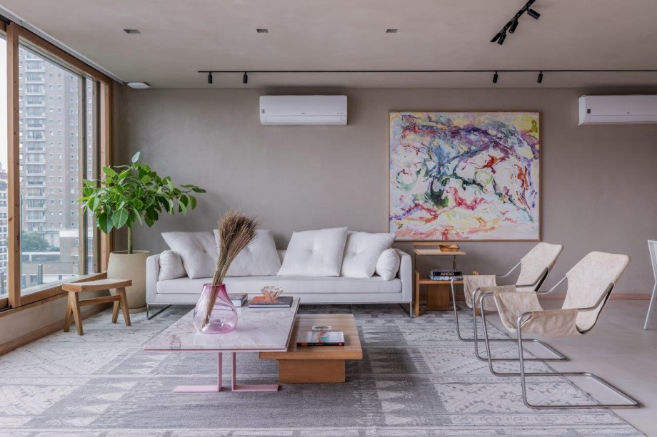 Para seu próprio apartamento, a arquiteta Helô Marques escolheu um imóvel dos sonhos: o triplex de 500 m² possui vista privilegiada e fica em um prédio antigo dos anos 1960, em um bairro onde a profissional sempre morou com a família. Por ser uma construção antiga, o imóvel é espaçoso e permite mais flexibilidade de usos.