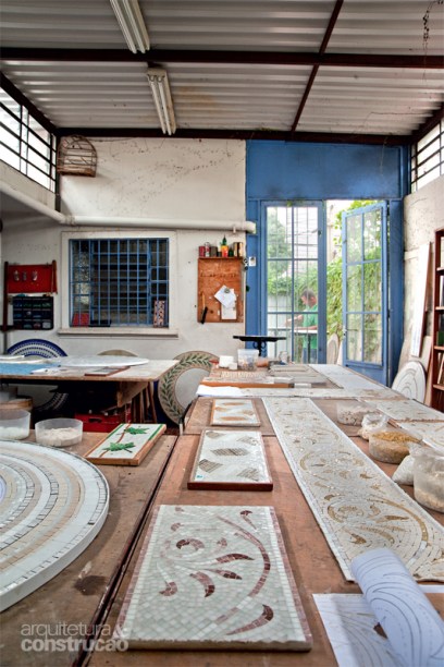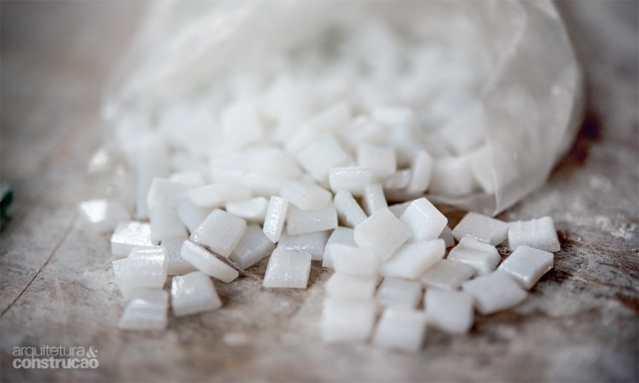 Fragmentos de diversos materiais ganham força renovada nos mosaicos da arquiteta Bartira Velludo.