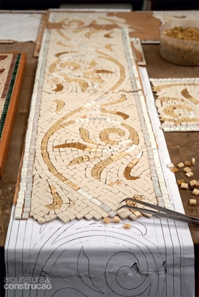 Como tudo o que as pessoas produzem de melhor, o mosaico sobrevive com dignidade ao passar do tempo. Aqui e ali, a técnica, famosa pelos exemplares gregos e bizantinos, recebe toques de novidade, mas, no fim das contas, escapa ilesa dos modismos (quem não se lembra da febre dos anos 90?). Artistas e arquitetos modernos inovaram ao trocarem a linguagem clássica por motivos abstratos, geométricos e gráficos, realizados com cacos cerâmicos e pastilhas industrializadas. Mais recentemente, seixos, metal e plástico, entre outros materiais, começaram a fgurar nas composições. Na esfera doméstica, uma boa amostra aparece na produção atual da paulistana Bartira Velludo. Os móveis, objetos e painéis sob encomenda que saem de seu ateliê refletem as melhores qualidades do método, perfeito para dialogar com a arquitetura. Veja mais: www.estudiodemosaicos.com.br.