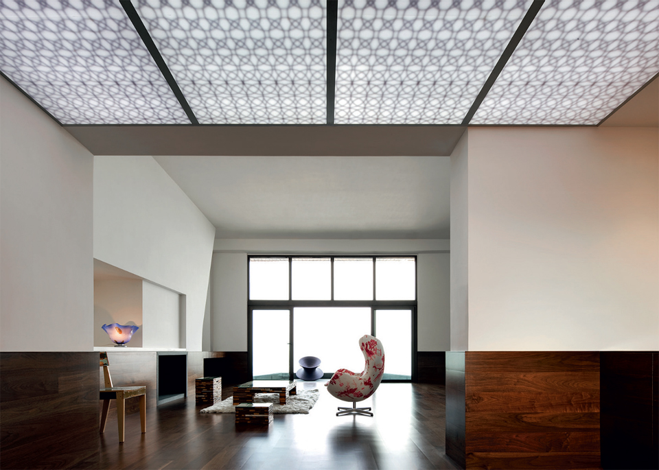 Forro de MDF com arabescos filtra luminosidade e rende efeito especial em apartamento chinês