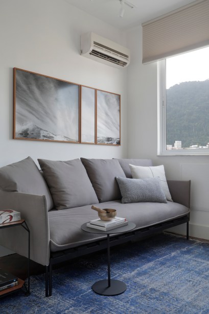 “Quando necessário, o casal pode isolar ou integrar os cômodos, conforme a conveniência. No quarto de hóspedes, optamos por um sofá-cama, que pode tanto acomodar as visitas para dormir quanto ampliar a quantidade de assentos, em ocasiões festivas”, explica a arquiteta.