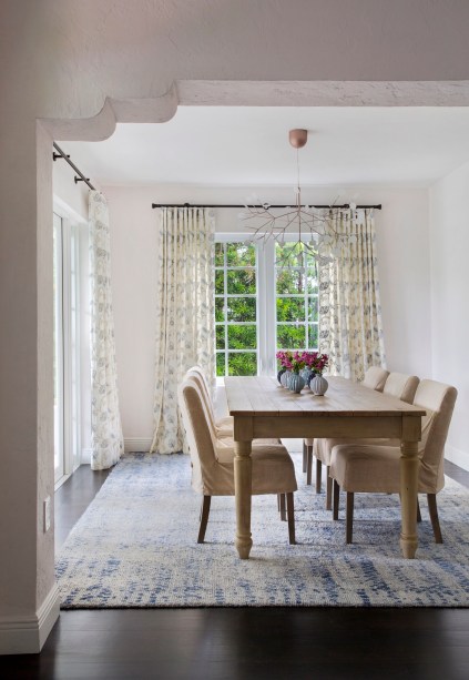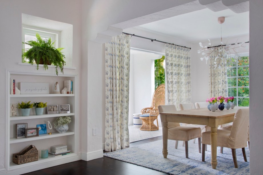 Localizada em Venetian Islands, na cidade de Miami, na Flórida, esta casa é o refúgio de férias de uma carioca, que desejava ter muito espaço para receber a família. Ao finalizar a obra de um apartamento no mesmo lugar, a moradora se encantou por esta casa de 300 m², que tem uma bougainville enorme no quintal, e mudou de planos. Chamou a designer de interiores Daniela Saliba e encomendou uma reforma para atualizar os ambientes a seu gosto, mas sem descaracterizar a arquitetura original.
