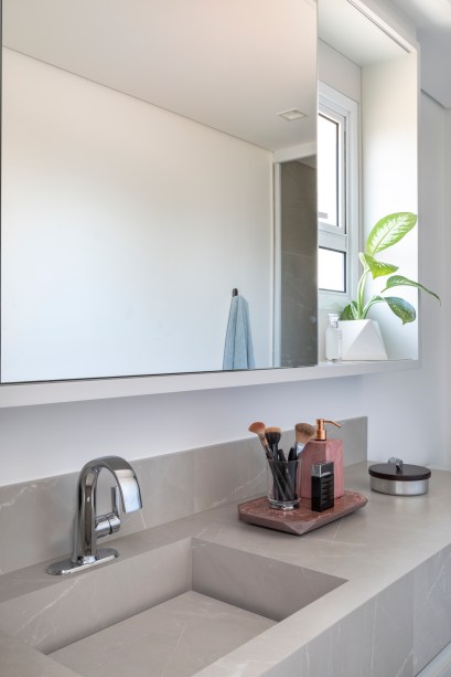 O conceito que pauta o projeto inteiro é o aberto. “Integramos o máximo possível os ambientes deste apartamento, oferecendo mais proximidade aos familiares nos momentos das refeições e de lazer. Esse conceito traz a sensação de amplitude e espaços mais bem utilizados”, comenta o escritório.